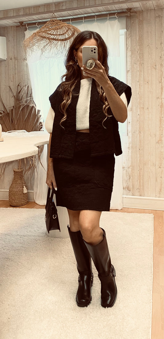 Jupe matelassée gaze de coton noir