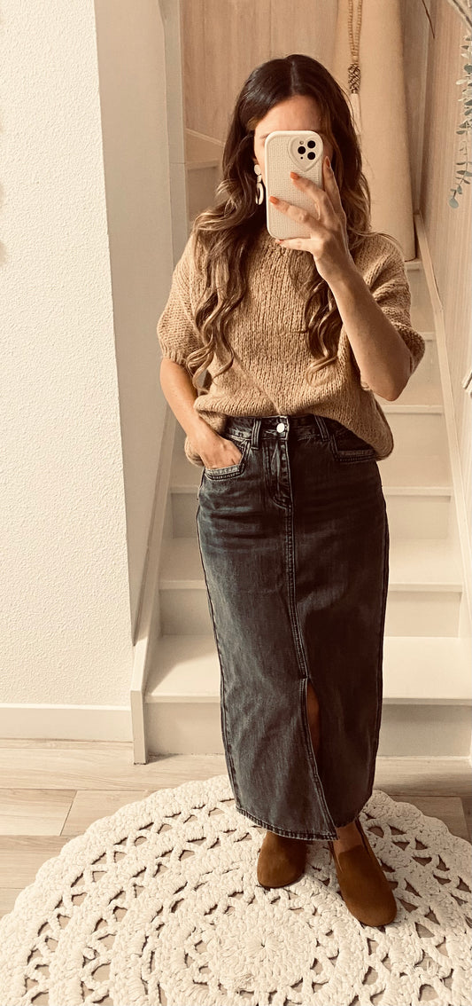 promosJupe en jeans noir délavé