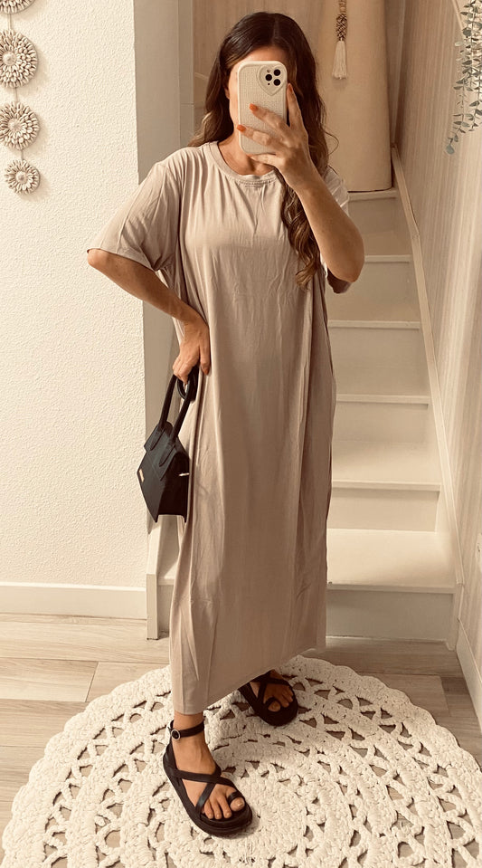 promosRobe longue tee-shirt beige